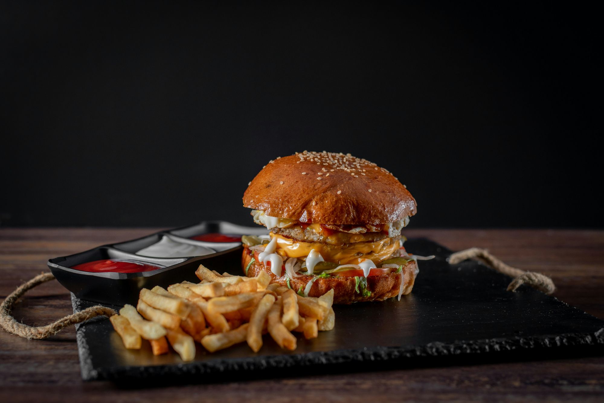 iubitorii de burgeri adevărați, unde gustul intens și ingredientele proaspete sunt pe primul loc. Preparăm burgeri suculenți din carne atent selecționată, combinați cu sosuri artizanale și ingrediente fresh în fiecare zi. Atmosfera modernă și relaxată transformă fiecare vizită într-o experiență savuroasă alături de prieteni sau familie. De la burgeri clasici până la combinații speciale, fiecare preparat este gândit pentru a surprinde prin aromă și calitate. Cartofii crocanți, ingredientele premium și porțiile generoase completează perfect meniul nostru. Punem pasiune în fiecare detaliu, de la preparare până la servire, pentru ca fiecare client să revină cu plăcere. Dacă îți dorești un burger autentic, plin de gust și personalitate, aici este locul potrivit.